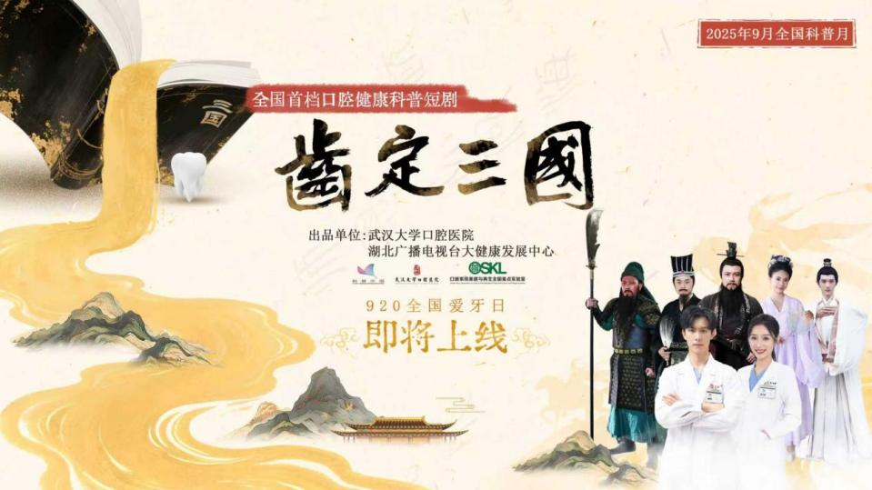 由武汉大学口腔医院与湖北广播电视台联合出品的全国首部口腔健康科普穿越短剧、湖北省首档健康科普短剧《齿定三国》,即将上线!该剧以轻松幽默的穿越剧情和电影级的制作质感,带你畅游三国,解锁有趣又实用的口腔健康知识!